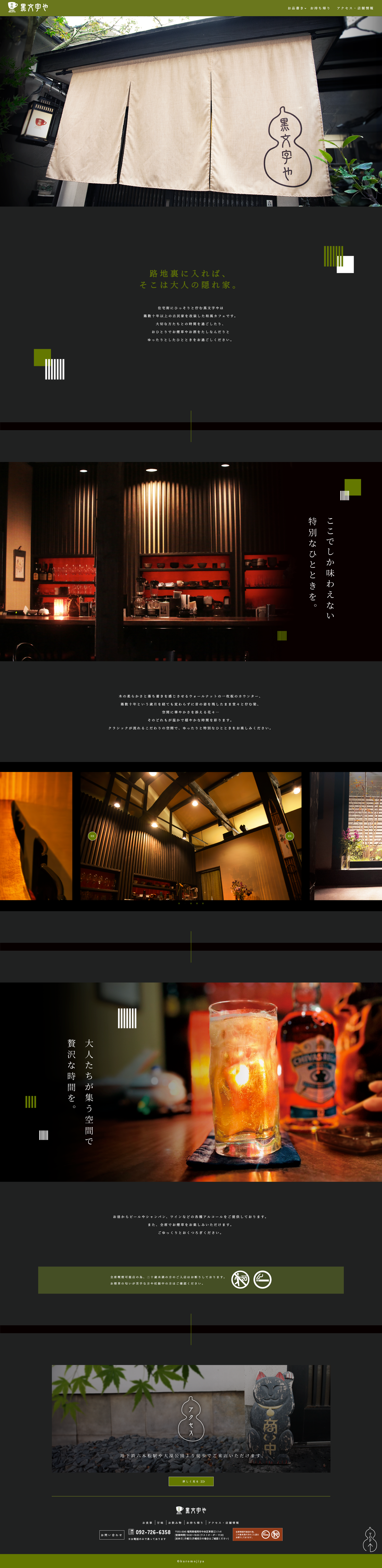 実在するお店からサイトをリニューアルしたいという依頼をもとに制作いたしました。大人の隠れ家×高級感のあるホームページにしてほしいというご希望があり、黒をベースにし、緑のアクセントを使って高級感と落ち着きを表現しています。